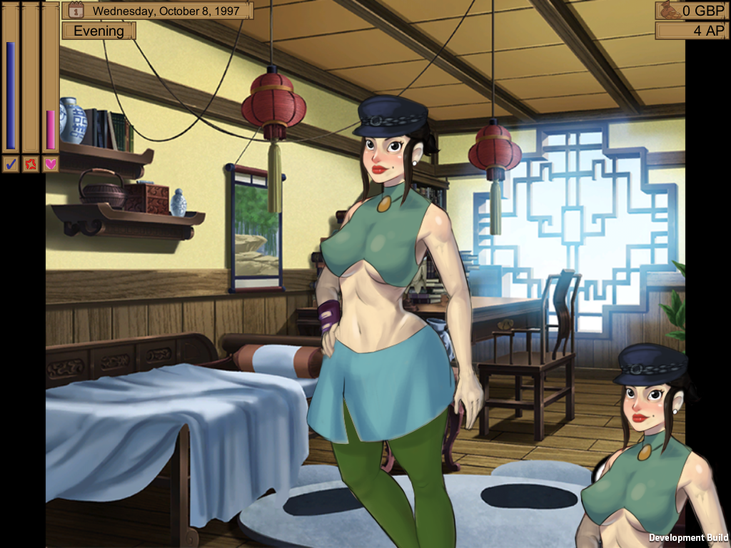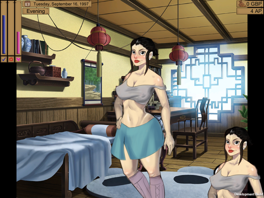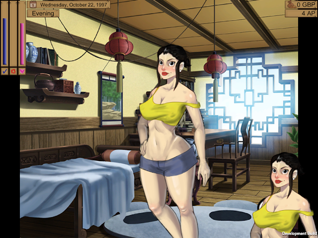 There is also programming-related news. The mom will now more intelligently tint her clothing so that the colors are more likely to match, reducing the likelihood of fashion disasters. The card collection system mentioned in the previous blogpost has been more fully fleshed out, and is set to be an integral part of the game's progression system. With these cards, you will be able to permanently unlock clothing and personality changes for the mom, as well as the main series of sex scenes.Lastly, we are still interested in working with more programmers, artists, and especially writers because there are still many scenes left to write. If you think you have what it takes, please feel free to email me at tyroflux@gmail.com, preferably with some examples of your other work.